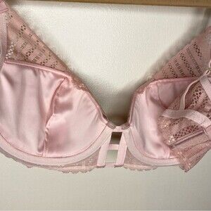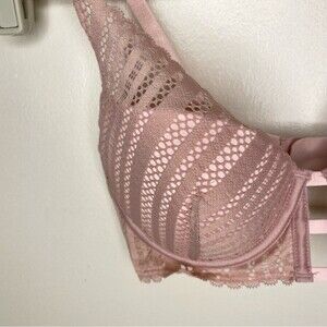 Victorias Secret Very Sexy Bra Lightly Lined Plunge Two Tone Lace Pink Size 34C