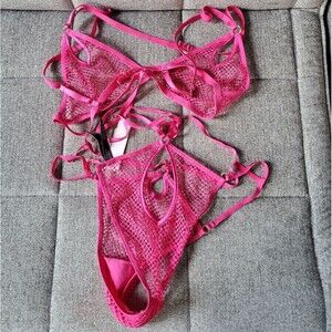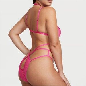 Victoria's Secret Very Sexy Fishnet Mesh Unlined Strappy Teddy Size S Pink