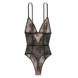 A classic sheer lace teddy is updated with contrast piping that contours your curves and satin-lined cups for a luxe feel.