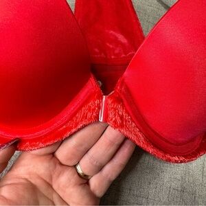 Victoria’s Secret Very Sexy Front Close Push Up Bra Red Velvet Trim Racerback