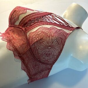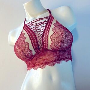 Victoria’s Secret Very Sexy High Neck Corset Lace Up Crisscross Racerback Bralette Bra Sz XS. Like New condition not worn . See pics Wire free support Lace , satin & mesh . Longline style . Stretch blend fabric . Actually supportive. Delicate scalloped trim lace . This is incredibly beautiful.