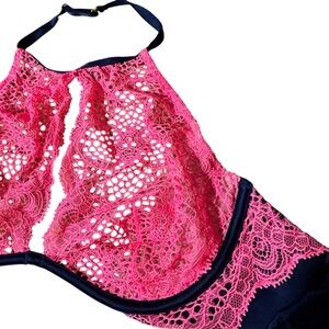 Victoria's Secret Very Sexy High Neck Halter Bralette Neon Pink Blue 38 C