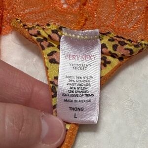 Bold and sultry Victoria’s Secret Very Sexy thong featuring a striking neon orange floral lace waistband paired with a wild yellow-and-black leopard print front panel. Soft, stretchy, and comfortable while still making a statement. Perfect for adding a pop of color and fierce energy to your lingerie collection.