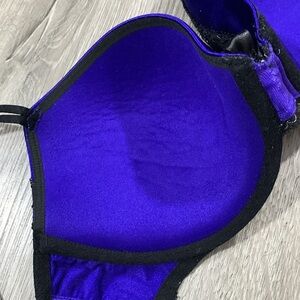 Victoria’s Secret Very Sexy Lined Demi Royal Blue/Purple & Black Lace Bra 32DD