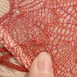 This is in great condition with minor signs of wear and pilling. Bra has a few pulls in lace.