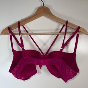 Turn heads in this iconic Victoria’s Secret Very Sexy push‑up bra, featuring shimmering fuchsia lace over satin, molded push‑up cups, and underwire lift. Strappy center detail and adjustable straps create a flirty, supportive fit—perfect for date night or everyday confidence under your favorites.