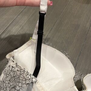 Experience comfort and style with this elegant lace underwire bra. Featuring a delicate white and black design, this piece offers both support and sophistication. Perfect for any occasion.
