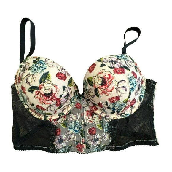 Victoria's Secret Very Sexy Push-Up 36DD Pink Floral Black Lace Corset Bustier