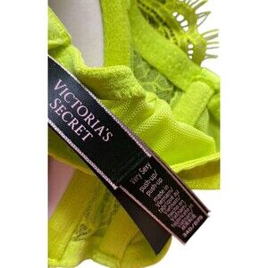 Victoria’s Secret Very Sexy Push-Up Bra 34D Neon Green Lace Rhinestone Straps