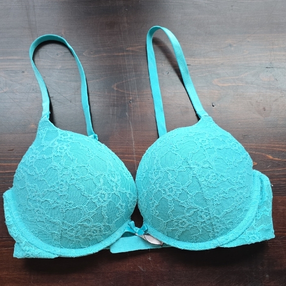 Victorias Secret, VS, Bra, Push Up, Plunge, Lace, Teal, Aqua, Turquoise, Blue, Padded, Underwire, 34C, Intimates, Very Sexy
