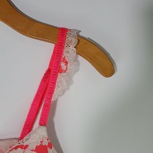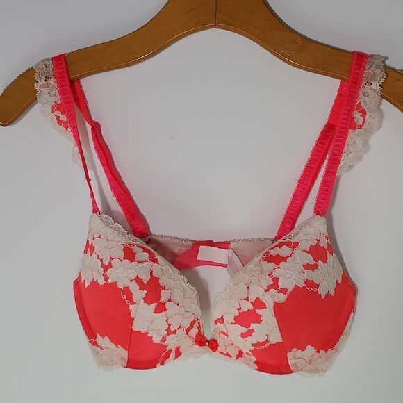 Victoria's Secret Very Sexy Push-Up Lace Bra Bright Pink Off White Floral 32C