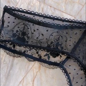 Victoria's Secret Very Sexy Sheer Lace Mesh Thong Panty Rose and Bows black