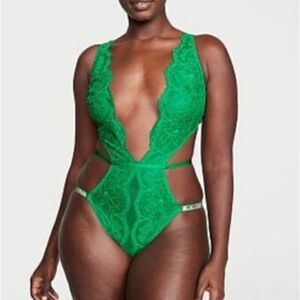 Victoria’s Secret Very Sexy Shine Strap Crotchless Strappy Lace Teddy Green