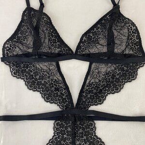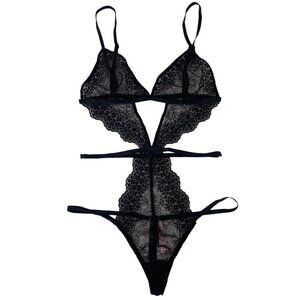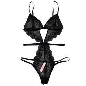 Victoria's Secret Very Sexy Strappy Lace Teddy, Chantilly Black Thong Back Small