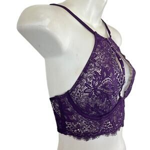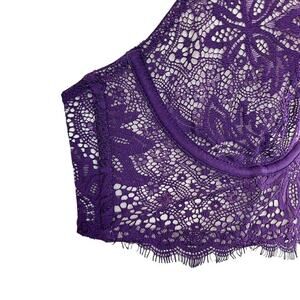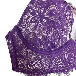 Victorias Secret Very Sexy Unlined Plunge Purple Whimsigoth Lace Wired Bra 32C