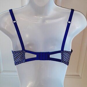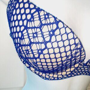 Victoria's Secret Very Sexy bra 80s Style Fishnet Plunge Underwire 32DD BLUE