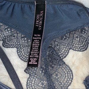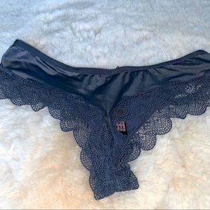 Victoria’s Secret Very Sexy thong V-string Panty Satin Lace Trim Underwear Grey