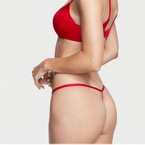 Victorias Secret Very Sexy Strappy Bow Lace-up Satin V String Panty Red