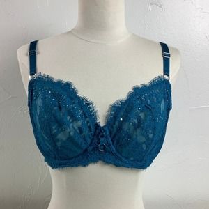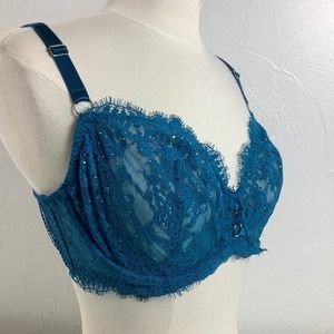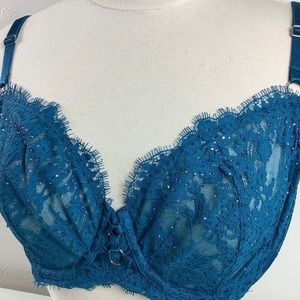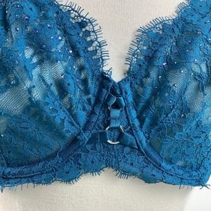 Victoria’s Secret Vety Sexy Unlined Demi Crystals Shear Lace Bra SZ 38C NWOT