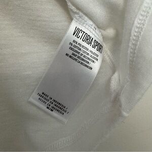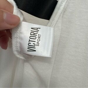 White tank top with red Victoria Sport logo. Perfect for workouts.