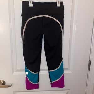 These Victoria Sport Knockout Leggings feature purple and teal color blocking with white trim detail. In great condition. Full length. Offers welcome!