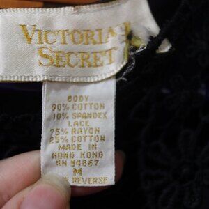 Victoria’s Secret Vintage 90s Black Bodysuit Gold Label Lace V-Neck Medium