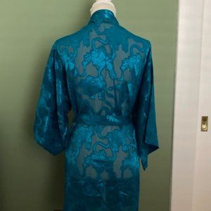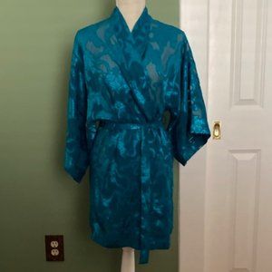 Victoria's Secret Vintage Floral Robe. Beautiful teal floral robe, lightweight and sheer. Detached belt (belt loops attached) and inner tie closures. 100% polyester, machine wash, tumble dry (low). From the 1990's, rarely used, EUC.