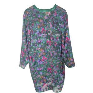 Elegant floral nightgown. Features vibrant green with purple and pink accents. Comfortable and stylish for sleepwear.