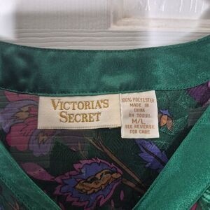 Victoria's Secret Vintage Gold Label Green Floral Dressing Down 90s Size M/L