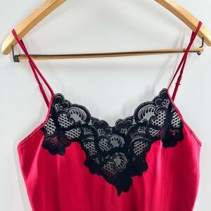 Victoria's Secret Vintage Gold Label Red & Black Lace Lingerie Nightgown