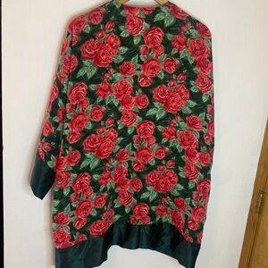 Victoria’s Secret red and green vintage rose pattern textured satin robe and slip lingerie dress. Dress is size S, robe is one size fits all. I am a size L modeling, dress runs big. Valentines Day. Excellent condition. Price includes both pieces and will only sell as a set. (B2) Listing as a M because this will fit S/M easily.