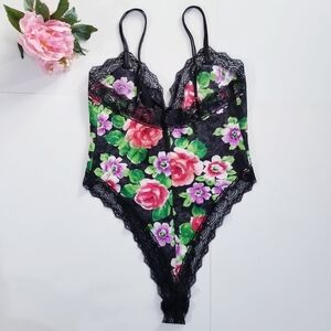 Vintage Victoria's Secret Gold Label Floral Lingerie Teddy Bodysuit