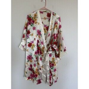 Victoria’s Secret Vintage Gold Label Tropical Floral Kimono Robe One Size Satin