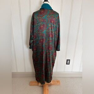 Features beautiful Paisley pattern in a colorful print. This robe has two deep front pockets with long sleeves and a full length.