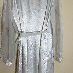 Victoria's Secret Vintage Gold Label White Embroidered Wrap Satin Robe Size M/L
