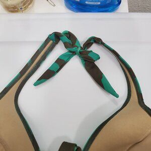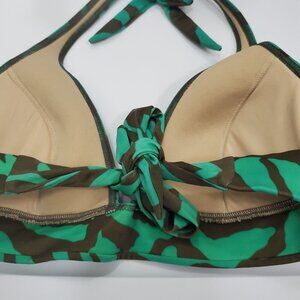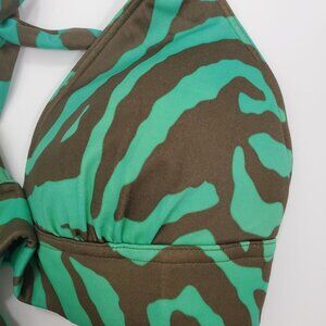 Victoria's Secret Vintage Green Gray Zebra Push Up Triangle Halter Bikini Top L