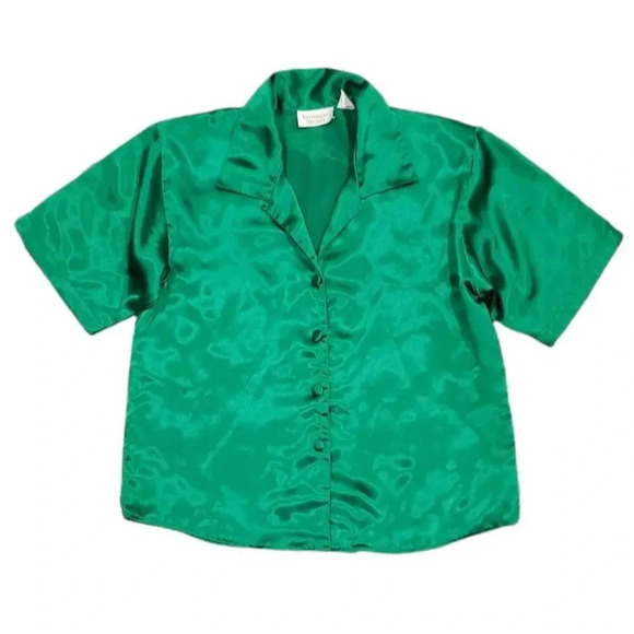 Victoria's Secret Vintage Green Satin Pajama Shirt XS
