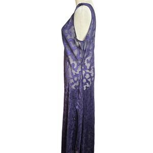 Fully sheer Patterned vintage VS maxi gown. Deep Purple color. Small hole in back near top hem. Sexy and stunnig.