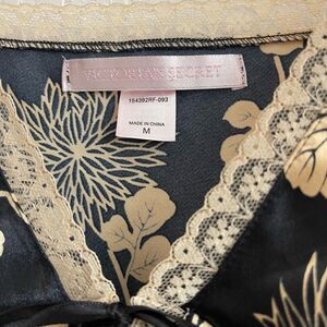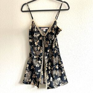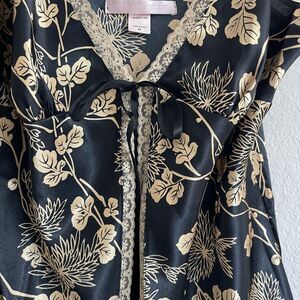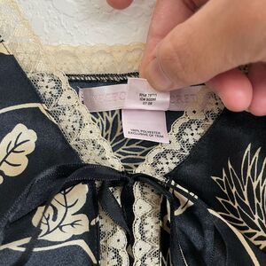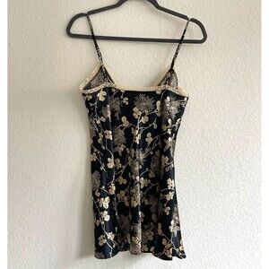 Victoria’s Secret Vintage Satin & Lace Lingerie Chemise Slip M Tie Black Gold