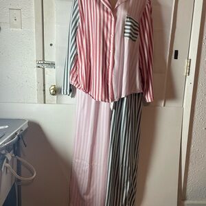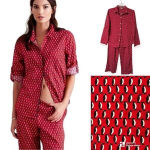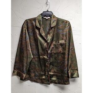 Victoria's Secret Vintage Satin Lingerie Button Red Embroidered Nightgown M/L with pockets