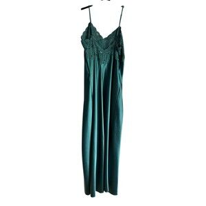 Victoria’s Secret Vintage Satin Long Slip Dress Lace Cami L New Deadstock Green
