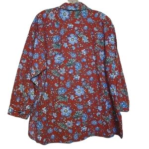 Women's vintage, red and green floral print gold label pajama pants set from Victoria's Secret, size medium. Collared button-down shirt is long sleeve with a chest pocket, buttons on wrists and small splits at sides; pants are pull-on style with elastic waist. Soft and cozy pajamas are great for the holidays. Excellent pre-owned vintage condition; no flaws.