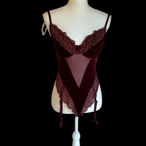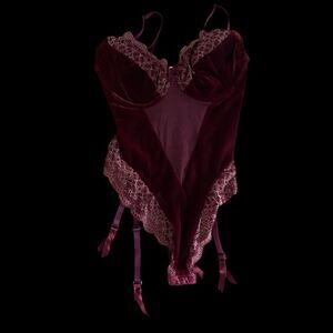 White Label Velvet Embroidered & Lace Burgundy Wine Victoria’s Secret Bodysuit