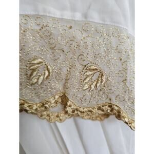 Beautiful white sheer robe with embroidered gold trim. More stunning in person. This is in excellent condition and comes from a clean and smoke home. Please see additional details in the photos.