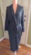 Black cotton, with paisley diamond prints, in white. Trimmed in black satin. V neckline, collared. Long, wide cuffed, sleeves. Inner ties. Matching, removable, tie belt. Long- midi to ankle length (depending on your height) @ 47"l. Fully functional, side pockets. Soft, stretchy fabric, & lightweight!