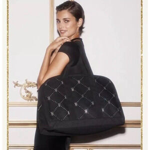 NEW Victoria's Secret Weekender Large Black Tote Duffle Bag Quilted Logo 2024