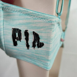 Pre-owned...the letters are peeling on the side (see last picture). May have piling on inside underwire lining and elastic