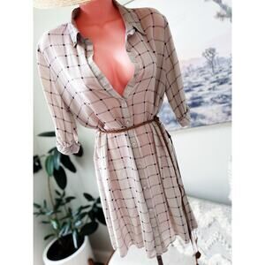 Victoria’s Secret Whispered Gridlines plaid Flowy button shirt dress Small