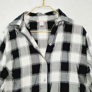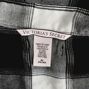 Victoria's Secret White & Black Flannel Plaid Button-Down Shirt 2524