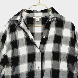 Victoria's Secret White & Black Flannel Plaid Button-Down Shirt 2524